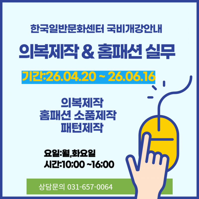 • 분류 국가고시반 인테리어4월 국비훈련-의복제작&홈패션 실무(주간반) Info. 26-03-17 11:04    54회    0건